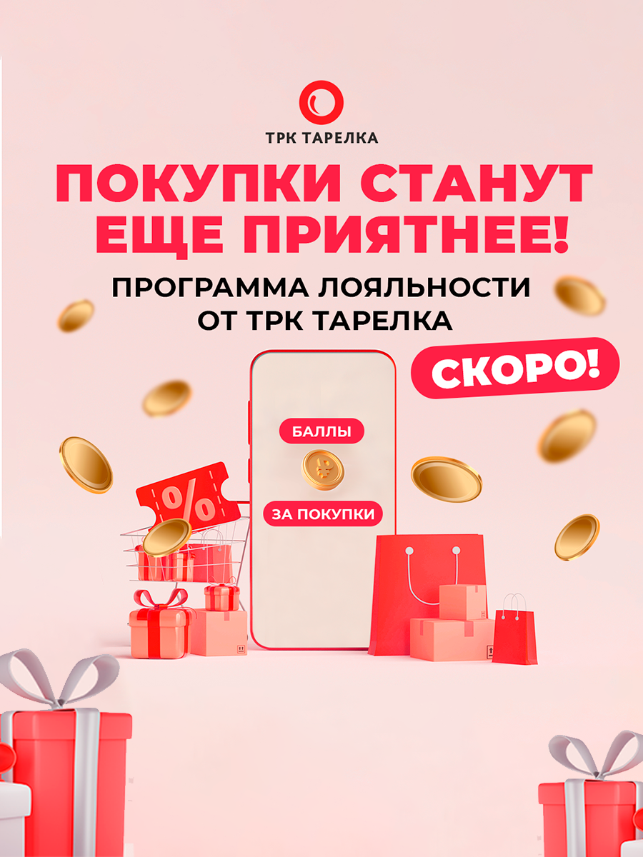 ТРК «Тарелка» готовит для вас приятный сюрприз! Совсем скоро мы запустим собственную программу лояльности!
