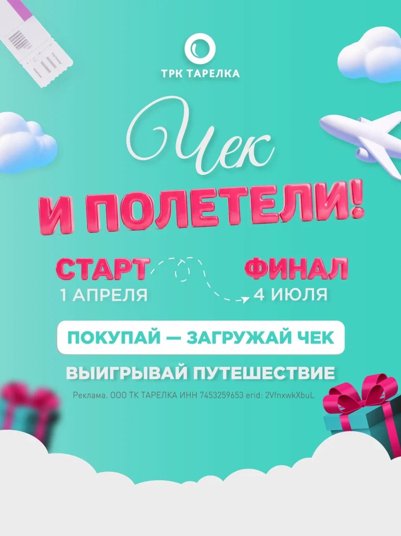 Реклама. ООО ТК ТАРЕЛКА ИНН 7453259653 erid: 2VfnxwkXbuL